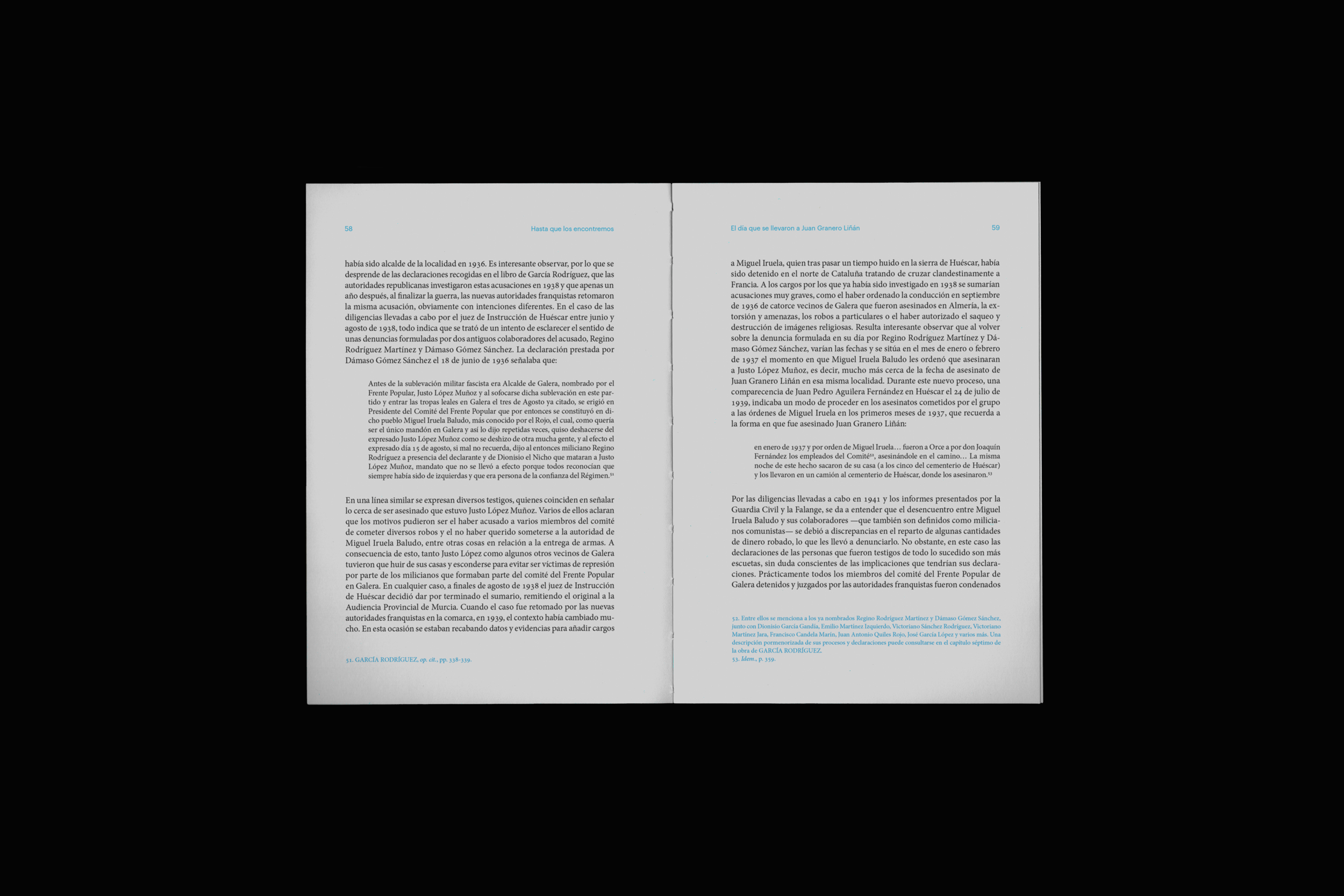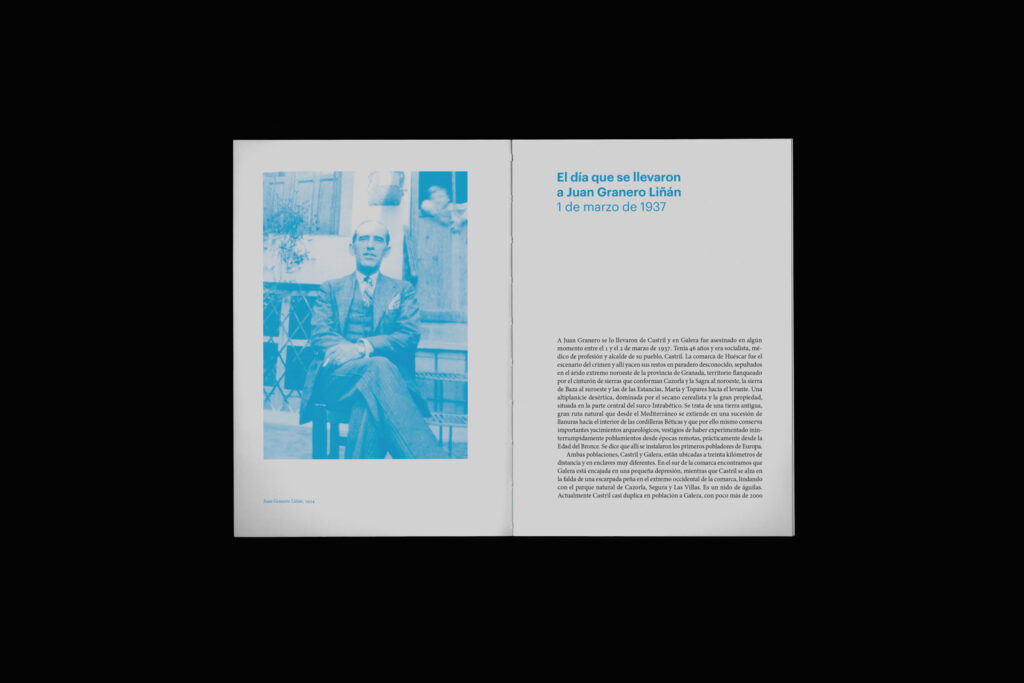 Visual identity and graphic system design for the editorial collection of the Virgilio Castilla Historical Memory Research Award, including the design and layout of its first publication. Virgilio Castilla Carmona was a politician from Granada, committed to the Republic and democratic principles, who was assassinated on August 2, 1936. The project defines an editorial line consistent with the nature of the award, conceived to give voice to researchers and to disseminate unpublished studies on the Second Republic, the Civil War, the Postwar period, and the Transition to democracy in the province of Granada.
