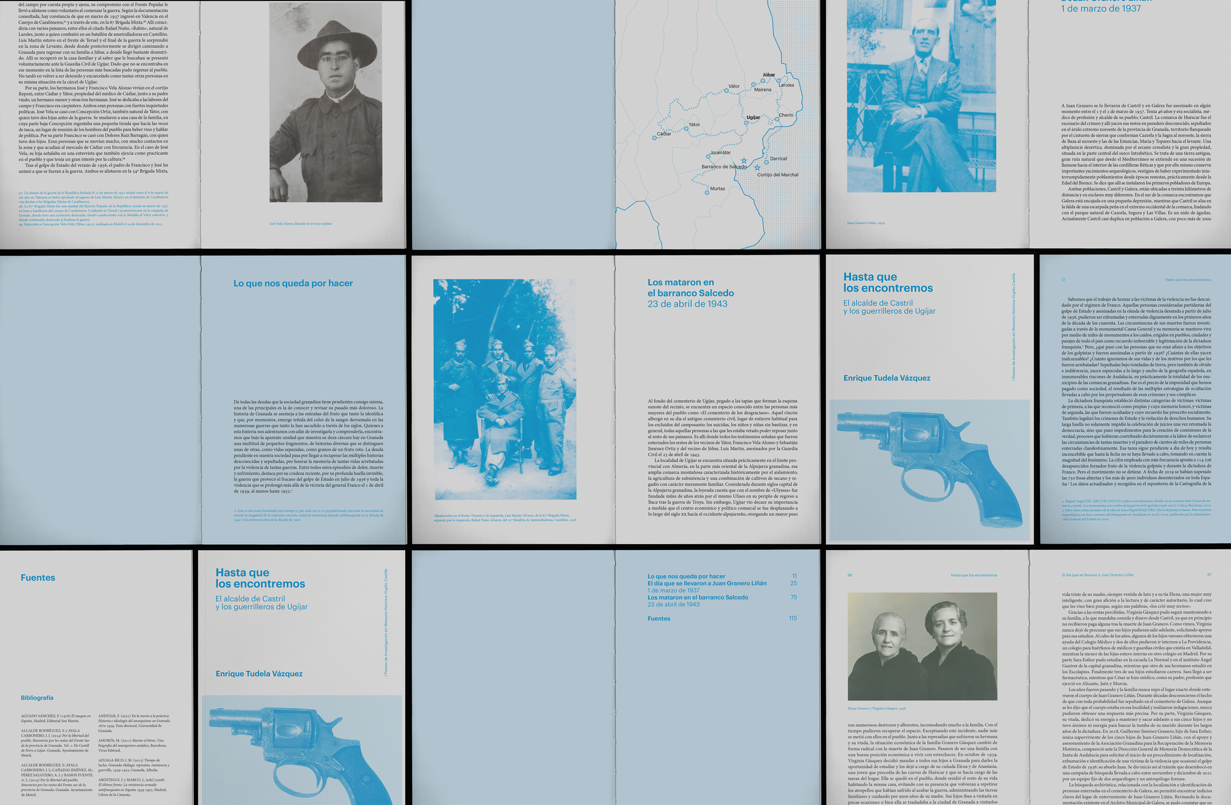 Identidad visual y diseño del sistema gráfico para la colección editorial del Premio de Investigación en Memoria Histórica Virgilio Castilla, así como diseño y maquetación de su primera publicación. Virgilio Castilla Carmona fue un político granadino comprometido con la República y los principios democráticos, asesinado el 2 de agosto de 1936. El proyecto define una línea editorial coherente con la naturaleza del galardón, dedicada a dar voz a investigadores y difundir estudios inéditos sobre la II República, la Guerra Civil, la Posguerra y la Transición democrática en la provincia de Granada.